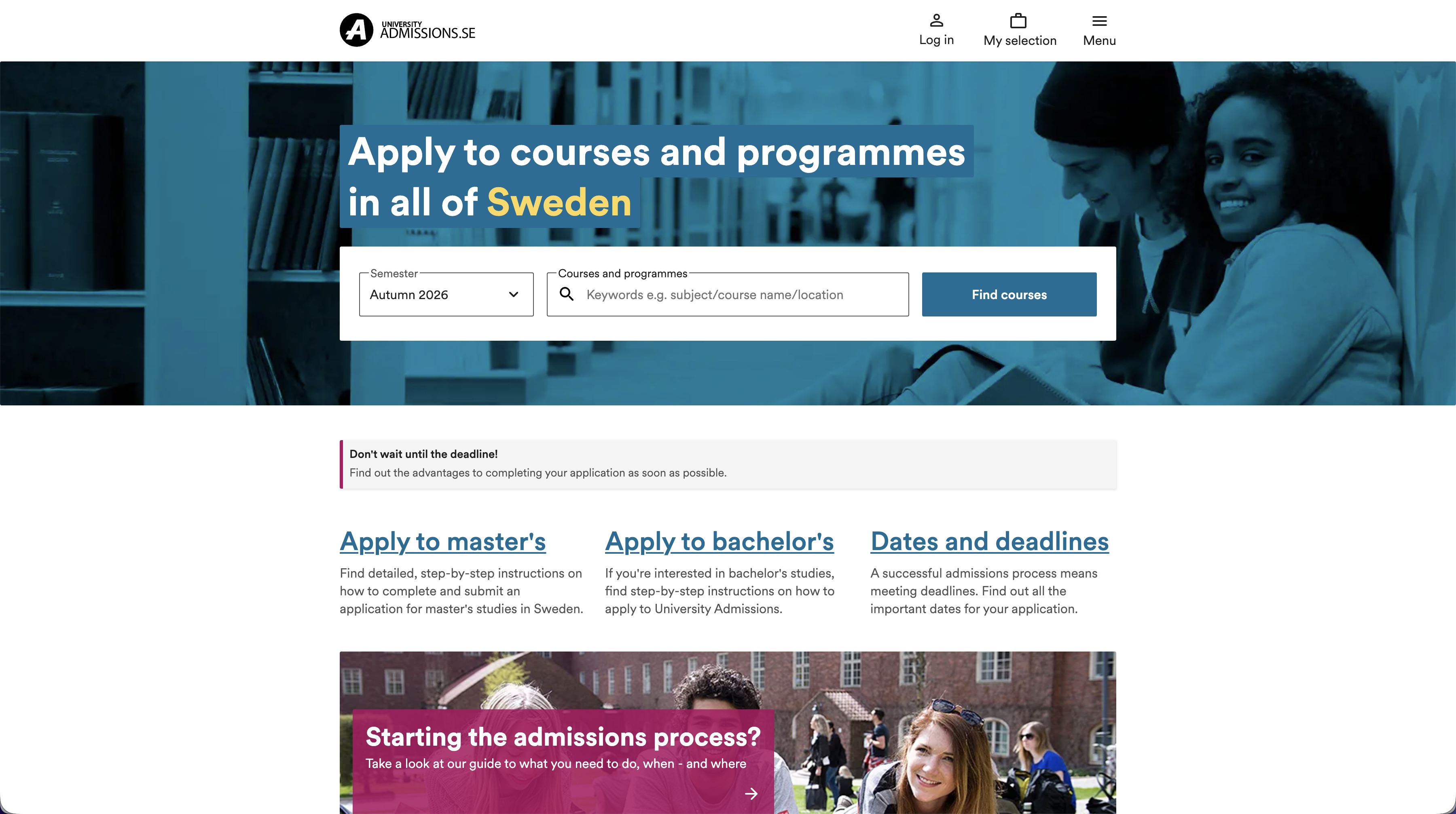 Voilà, sau khi chọn được các khoá học yêu thích, các bạn cùng truy cập vào website https://www.universityadmissions.se để bắt đầu ứng tuyển ngành học nhé.